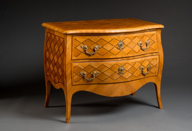 Hier finden wir die im Vergleich zu den Franzosen schlichter gehaltene (deutsch-) schweizerische Version eines solchen Möbels. Johannes Aebersold war einer der bedeutendsten Ebenisten der Schweiz, tätig in Bern. Viele seiner Stücke wurden jedoch fälschlich den beiden anderen großen Kunsttischlern der Schweiz in dieser Epoche, Matthäus Funk und Christoph Hopfengärtner zugeschrieben, was mittlerweile korrigiert werden konnte.